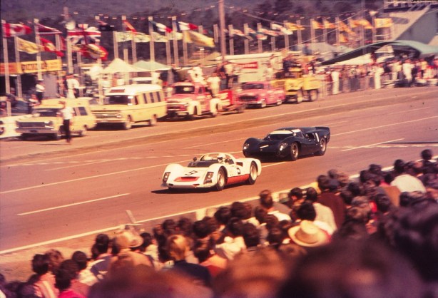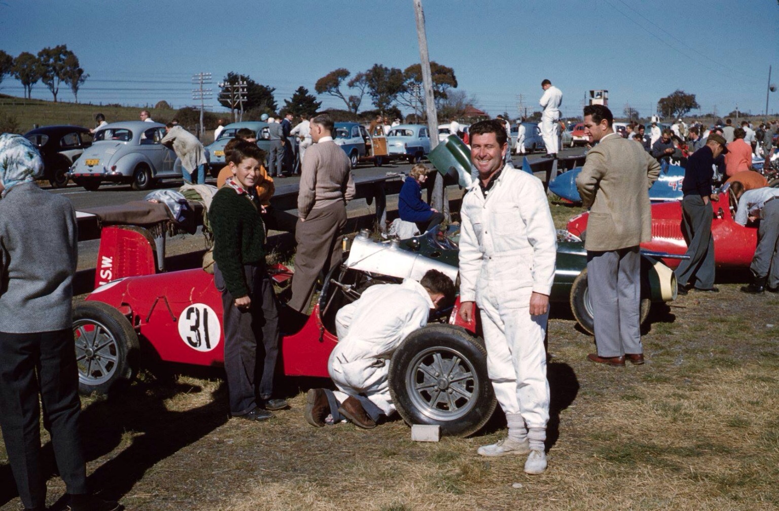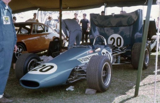 Glynn Scott’s Bowin P3 Ford FVA and Lotus 23B Ford in the Lakeside paddock in October 1968. The 911 T/R is Alan Hamilton’s, just arrived and so impactful in the 1969 ATCC (G Ruckert)