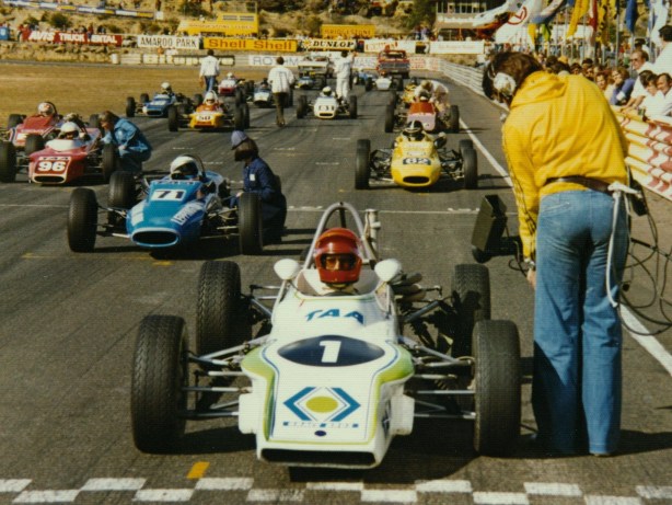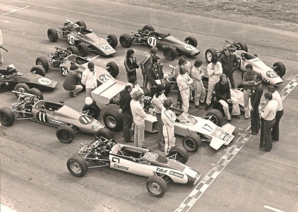 We have lift off- Sandown DTE 1978. Elwyn Bickley Elwyn 02, obscured Peter Krefel Royale RP21, Richard Davison #5 Hawke DL17, to the right near the fence Lyndon Arnel Lola T440- look down on the fence side of the grid and you can see the distinctive P4 nose of that years champ- John Wright’s car (C Davison)