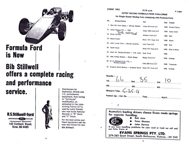 He is at Calder given the role the LCCA had in providing administrative support for the FF category which continued until the clubs demise as a result of the fiscal disasters which occurred due to running two poorly attended World Sportscar Championship races in the mid-eighties. Jon Davison saved the sports bacon by picking up the circuit lease but that central LCCA gathering place and watering hole on the corner of Roy Street and Queens Road for Victorian racing folks has never been replaced.