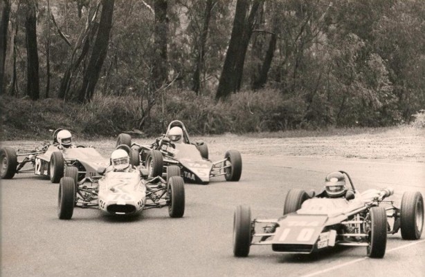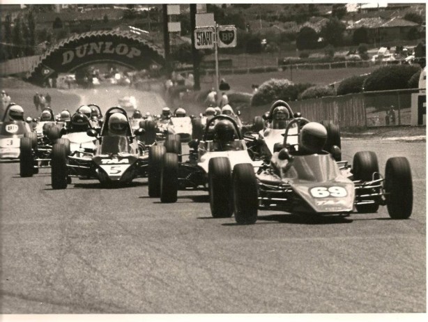 Oran Park 1976 DTE Bowins as far as the eye can see! John Davis, John Smith and Mike Quinn all in P4s, then Richard Carter Birrana F73- Carter still prodigiously fast in historic racing to this day (Bennett)