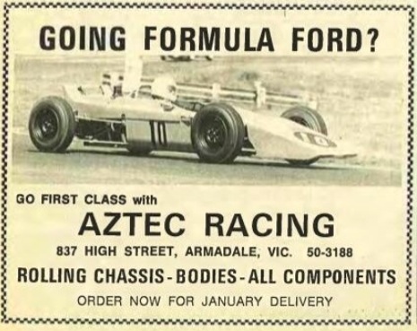 That first Australian FF race at Sandown on 25 November 1969 was contested by a mix of bespoke FF’s and converted Formula 3 cars. The race was won by Richard Knight’s Bib Stillwell owned Elfin 600 from Murray Coombs’ Lynx and Allan Ould’s Aztec AR8 driven by Bob Minogue- many years later a fast F5000 competitor in the ex-Brown/Hamilton/Costanzo Lola T430 Chev. The Elfin 600 is still about with Allan Ould looking for a Hewland Mk4 or 5 gearbox to complete the Aztec in time for the Sandown fifty year celebration meeting. The Lynx, I’m not so sure about.