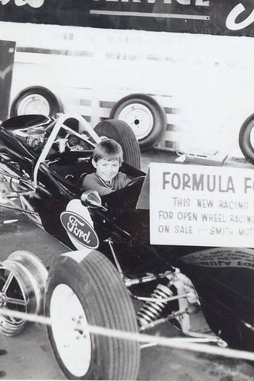 Current historic Van Diemen RF86 racer Anthony Mann dreaming of his own Formula Ford as a 9 year old kid aboard the FF ‘display car’ a Wren FF in Shepparton 1969 (Mann)