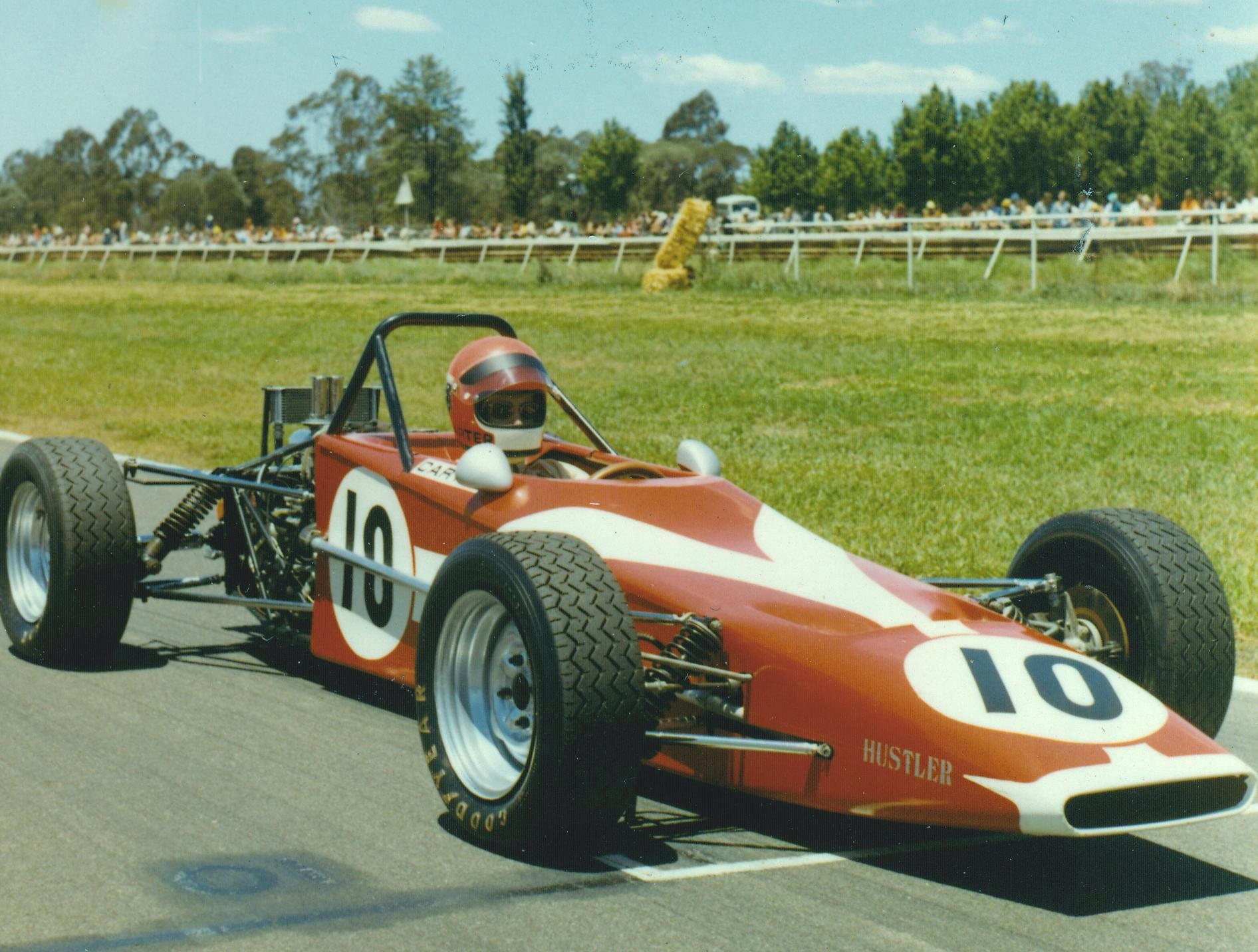 Richard Carter in the Tony Simmons built Hustler FF, Warwick Farm circa 1972. Tyres are Goodyear RR12’s (N McDonald)