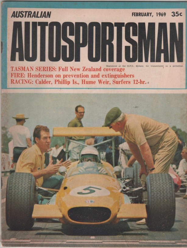 Just to show the ‘Sub’ was yellow! Bartlett the cover boy of this terrific seasonal publication of the 1969 Australian Racing Season. Here the car is in 2 litre Waggott spec
