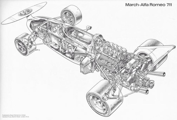 It was not enough really, not without impeccable reliability, but Alfa had put their toes back in F1 waters with McLaren in 1970 and then March in 1971- and would return with Brabham in the mid-seventies, as they had started with Mildren’s Brabham BT23D a decade before.