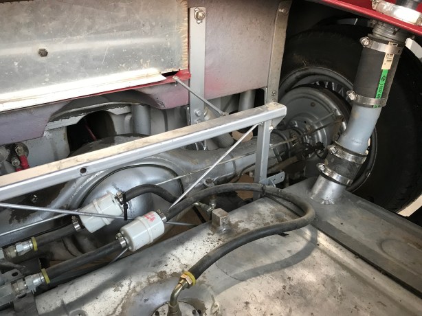 A pre Le Mans test at Hockenheim revealed some flexing or binding in the front suspension, which made the steering clumsy and a little unstable- a shaker rig gave the crew comfort that the components would not break- post Le Mans testing showed the front wishbones were deflecting causing castor angle changes. Peter Elleray decided to draw completely new front suspension as a fix.
