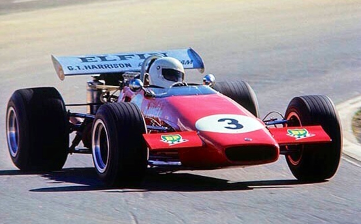 John Harvey ahead of one of the Elfin 600’s. Jane nee Rennmax Repco V8 – 830 Series V8. Bob Jane obtained the 830 V8’s used by Jack Brabham in the 1969 Brabham BT31- good works motors (L Hemer)