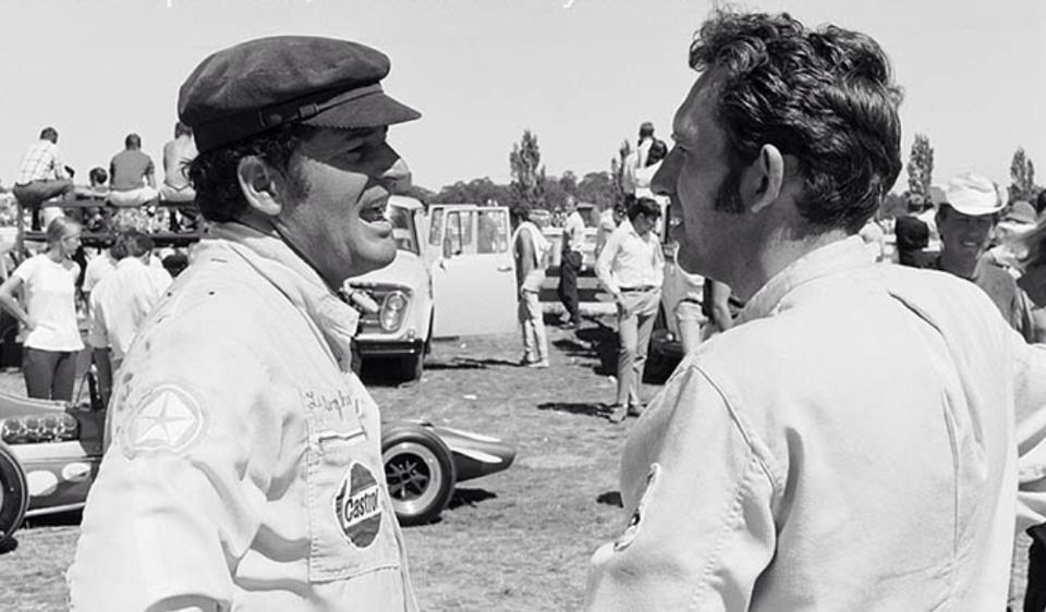 Leo Geoghegan and Garrie Cooper at Symmons in 1970 (oldracephotos)