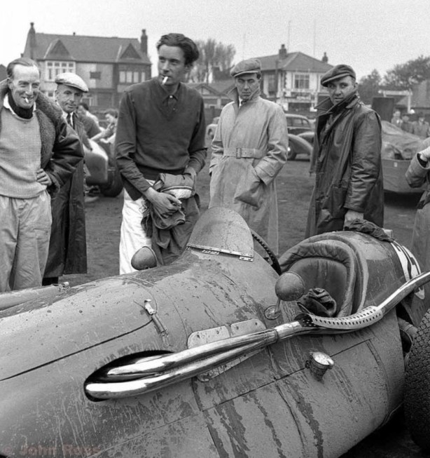 Here in the paddock you can see the Leaton Motors livery of Frank’s car really clearly- that’s Aussie’s Cooper to the right and a Maserati 250F behind. Its Arnold Glass’ car, he was fourth in the Longford Trophy behind the three Cooper T51’s of Brabham, Mildren and Stillwell. A wonderful, relaxed, bucolic Longford scene. Another link, about this meeting; https://primotipo.com/2015/01/20/jack-brabham-cooper-t51-climax-pub-corner-longford-tasmania-australia-1960/