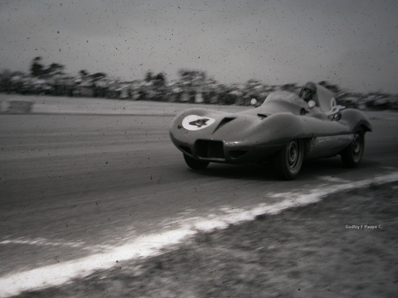 The one above is probably of the 1958 Australian Tourist Trophy race or heat- Pitt on the outside is about to pass ‘Gelignite Jack’ Murray in ‘XKD532′ DNF, then the third placed Cooper T38 Jaguar of Ron Phillips follows and then Charlie Whatmore’s Lotus 11 Climax. See the #16 Lotus 15 raced by Derek Jolly to second place behind the winner, David McKay’s Aston Martin DB3S. Click here for a piece on his DB3S’; https://primotipo.com/2017/09/28/david-mckays-aston-martin-db3ss/