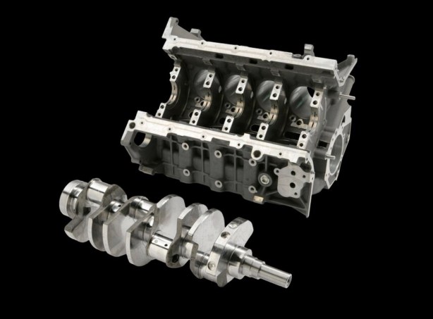 Series of photographs of the Ford ‘Coyote’ 5 litre, all aluminium, chain driven DOHC, four valve V8 block, heads and crank (Ford)