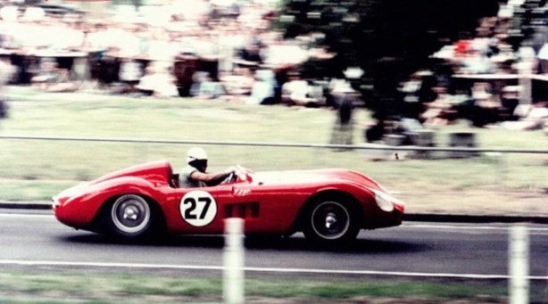 Kevin Drage’s shot of Bob is at Fishermans Bend on the race debut of his ex-works 300S ‘3059’ in October 1958. Doug Whiteford and Jane (in Bob’s case after Reg Smith had it briefly first) acquired the Officine Maserati cars raced by Jean Behra ‘3055’, and Stirling Moss ‘3059’ during the 1956 Australian Grand Prix/Australian Tourist Trophy weekends in late 1956.