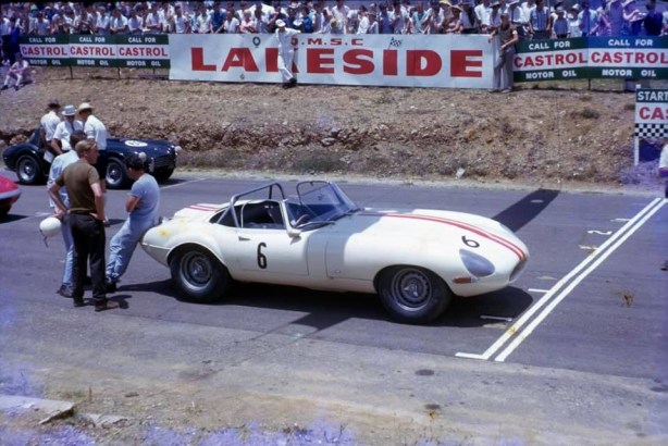 An interesting aspect of that ATT photo is Ron Thorp’s 289 Cobra on the grid. This must have been the first 10 lap heat of the ATT won by Jane. You will see that QMSC officials including I presume the Head Scrutineer heading towards the Cobra. They advised Thorp that he could race the Cobra but that he wouldn’t be classified due to the rear wheels sitting proud of the guards. Thorp told the officials where to stick it and removed his Cobra from the grid. It had been his first trip to Lakeside and he never returned.