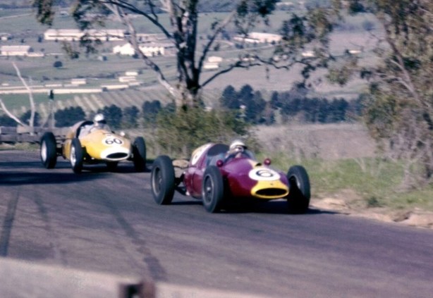 Bib Stillwell and Austin at Reid Park Gates, Bathurst in October 1960 during the ‘Craven A International’ won by Brabham’s similar Cooper T51 Climax (J Ellacott)