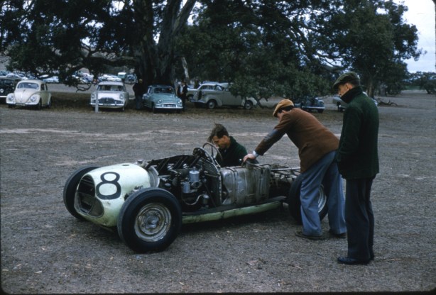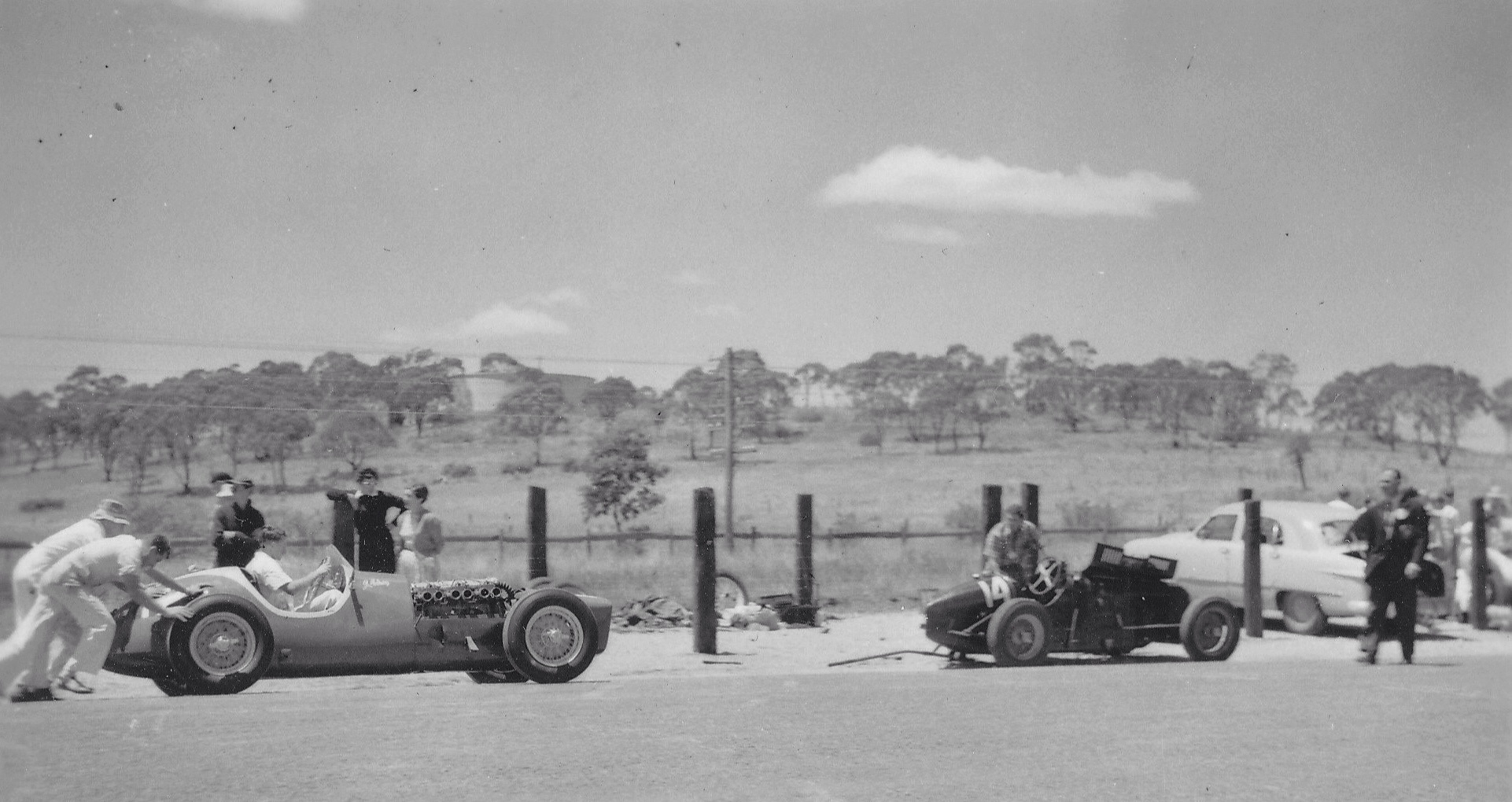 Bathurst I think- Austin, T51 Climax from Alec Mildren, Cooper T45 Climax- then again it may be Alec’s T51 Maserati but it must be 1961 not 1960 as the induction side on the engine in Mildren’s car in 1960 was on the other side, whereas in 1961 it was on ‘this side’ as above. I don’t think Austin’s T51 ever met Alec’s T45 at Bathurst- the T51 Maserati yes. Then again this might not be Bathurst…help, I think.