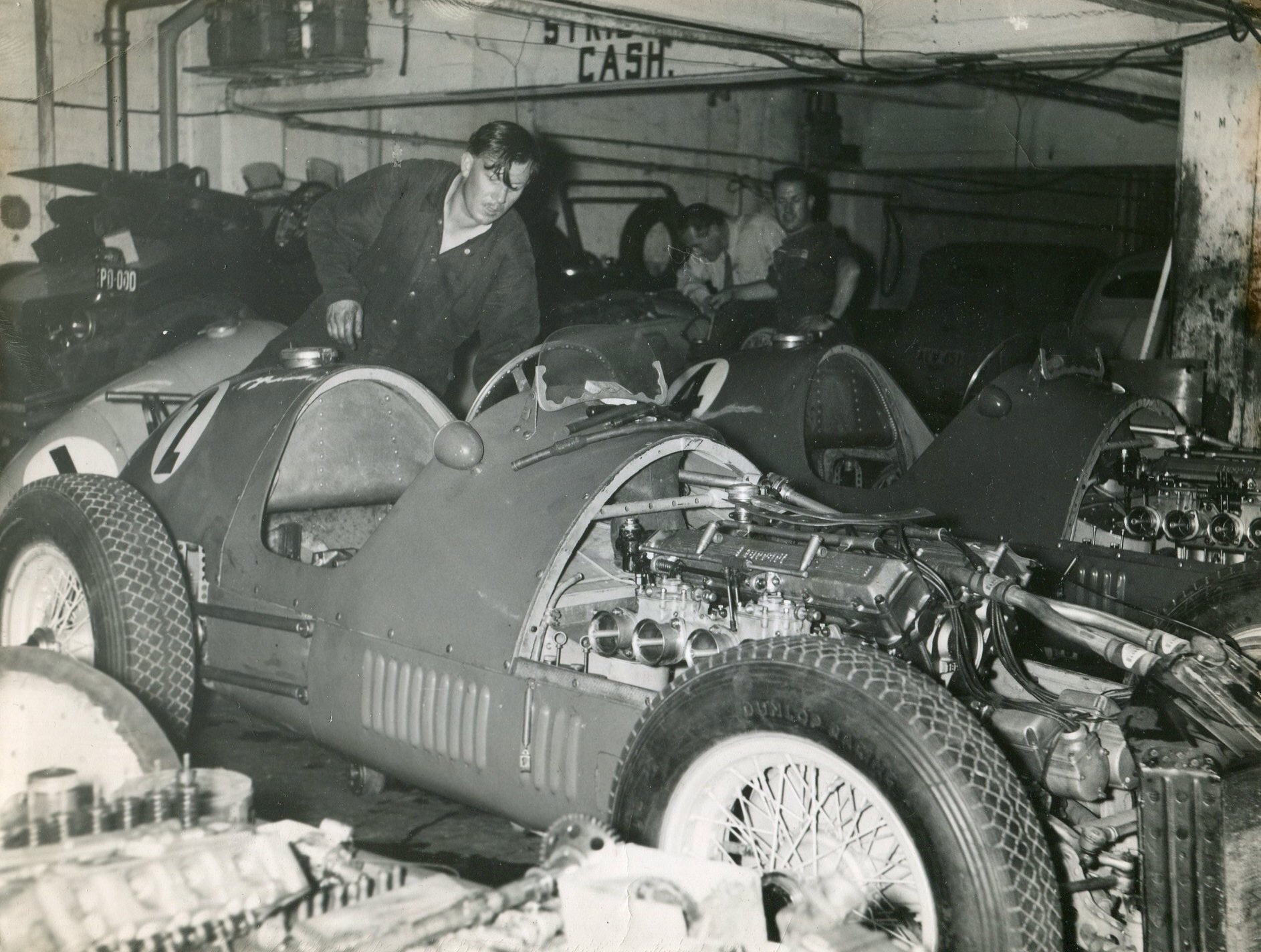 Aussie sets to work on the 2.2 litre Coventry Climax FPF, Longford 1960 (G Richardson)