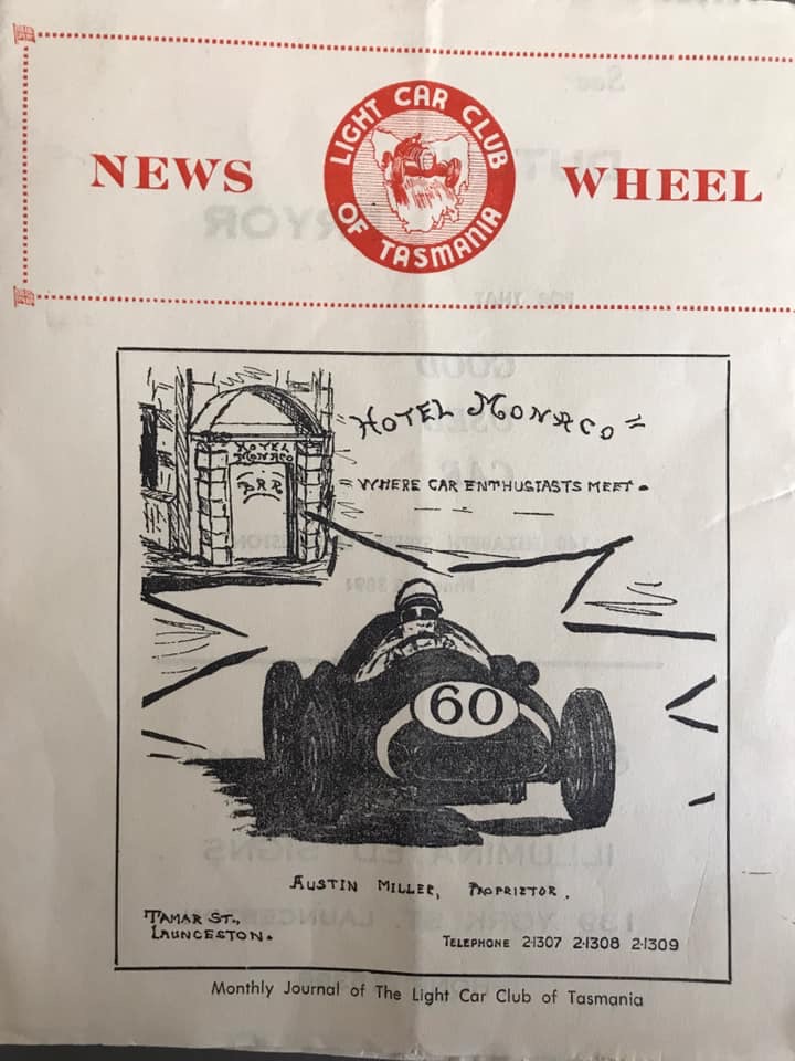 I had known my friend, the late Austin Miller, for a number of years previously. We had raced cars together in earlier times. Around 1959 when Austin came to live in Tasmania after recovering from a fairly major air crash in Victoria- he had operated an aerial crop spraying business for many years and decided at that time that perhaps a slower pace of life would be better suited to his well-being. So he bought a hotel in Launceston, renovated it and renamed it The Monaco Hotel which soon became the hub for motor racing fans from far and near.