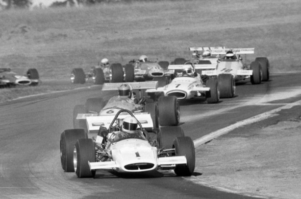 Brabham had still not returned to Europe and would again win the feature race, The Repco Trophy but Aussie started from the third row and raced in third place for some laps before tyre wear meant he yielded to Bib and finished fourth behind Jack, Bill Patterson and Bib Stillwell, all, again, T51 mounted.