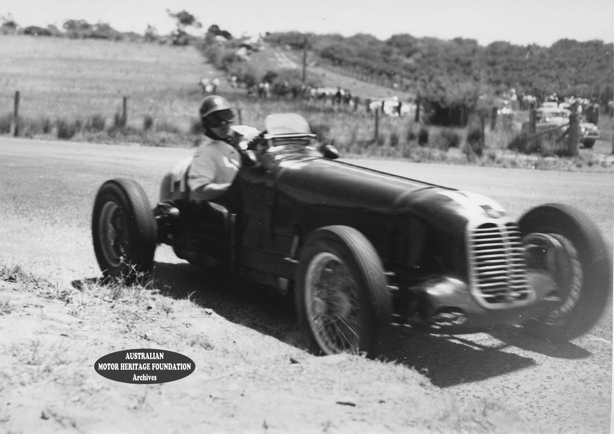 Austin’s T51 with John Roxburgh’s T45 2 litre FPF in the distance on the drop into ‘MG’ corner- Bill Patterson won from Aussie and Bib Stillwell, T51’s all.
