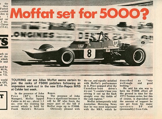 The only thing I was fully confident of was the fact that Aussie Miller was one of very few blokes in the world who could steer this mish- mash of bits to success. His long career in flying and driving at the top echelon of open wheeler racing in this country certainly proved he had not only the courage but also the anatomy to do the job’.