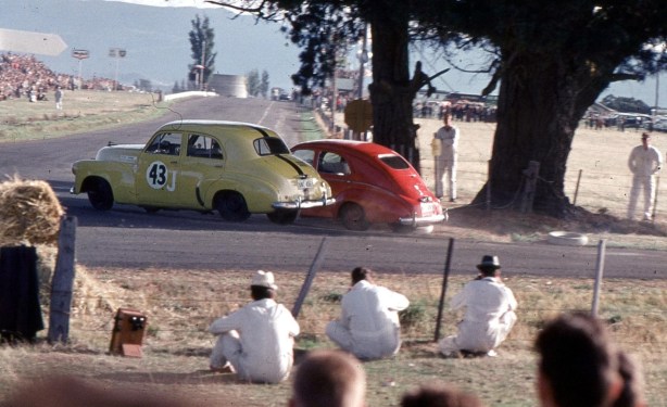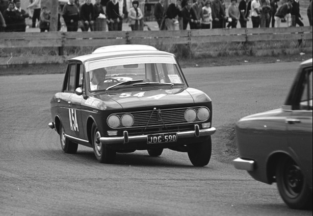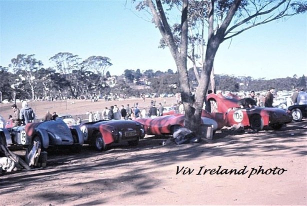 The Wylie Javelin doesn’t get a mention in the race report I have so perhaps the little minx misbehaved that weekend and did not start the race? Paul Cummins tells me the amazing little bolide was raced by Arthur Griffiths with ‘wire mesh on the grille, probably to keep the cane toads out’ not that they were in plague proportions back then but one can’t be too careful. Rob Bailey points out the red #45 Harry Firth built MG Holden, now owned and almost restored by Ian Tate.