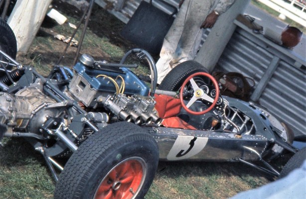 Back in England things were tough too- at Aintree on 7 August he was twenty-fifth where Peter Procter won in year old Lotus 18 Ford, at Goodwood a fortnight later the run of poor showings continued with a DNF due to overheating.