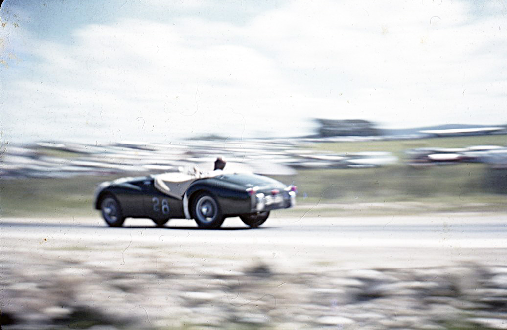 Superb shot of Barry Griffith’s Triumph TR2 on the limit and looking very racey sans windscreen but with cream tonneau.