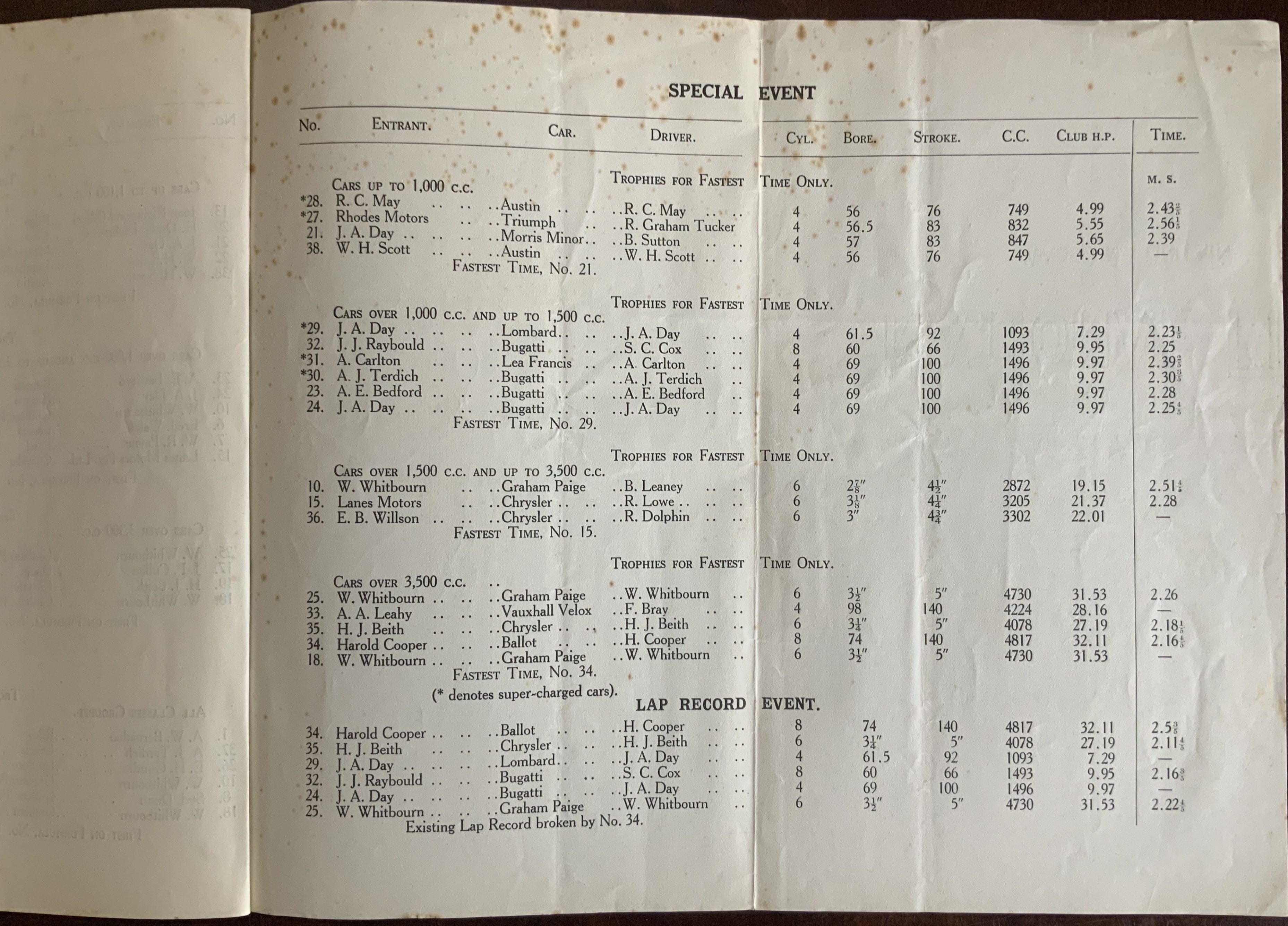 Jack did the fastest lap at 3 minutes 53 seconds, an average of 88 mph this was a smidge outside the record set by Dick Cobden’s Ferrari 125 V12 s/c in 1954.