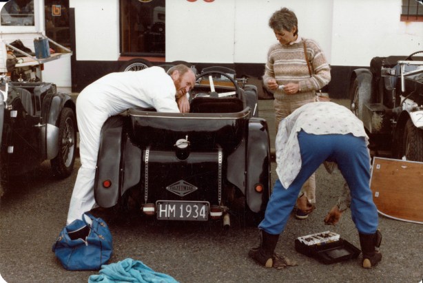 Frazer Nash being worked on at Dunedin in 1984 an below in Gavin Bain’s New Zealand yard.