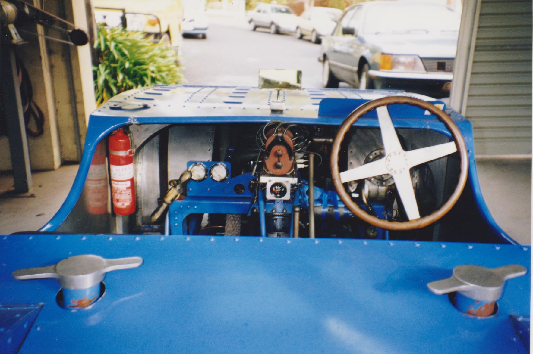 After several blow-ups, the engine was replaced with a Ford V8 in which form it went on to even more fame as the Day Special, driven by Jack Day and then Gelignite Jack Murray. Many years on I was able to restore it using the engine from its sister car.