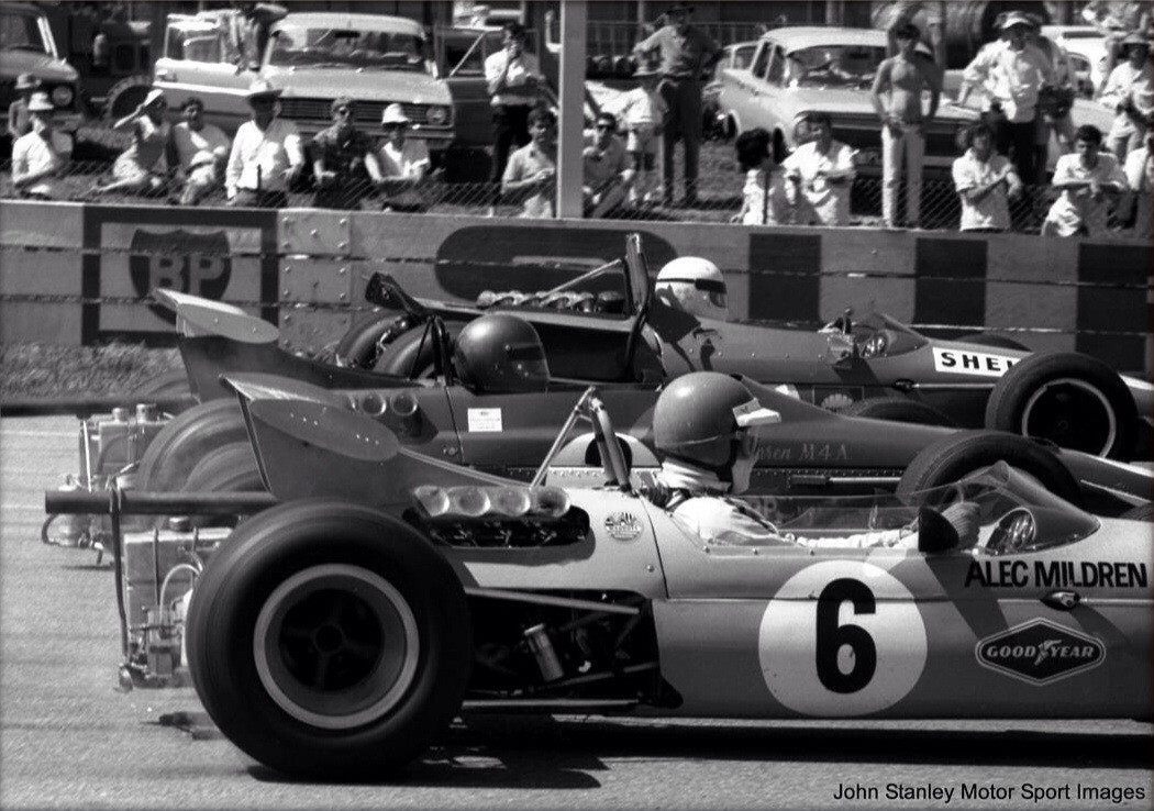 Kevin Bartlett was the race favourite but had problems in practice and as a consequence started from the back of the grid- his ex-Gardner Mildren Alfa 2.5 V8 was the class of the field in 1969 as the similarly engined Alec Mildren Racing Brabham BT23D had been the year before.