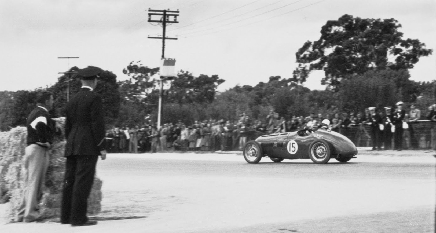 Tom Bradey and Charlie Sheppard, Singer 9 Bantam on the way to winning the first Australian Touring Car Championship aka the ‘Australian Stock Car Championship’ at Lobethal in 1939.