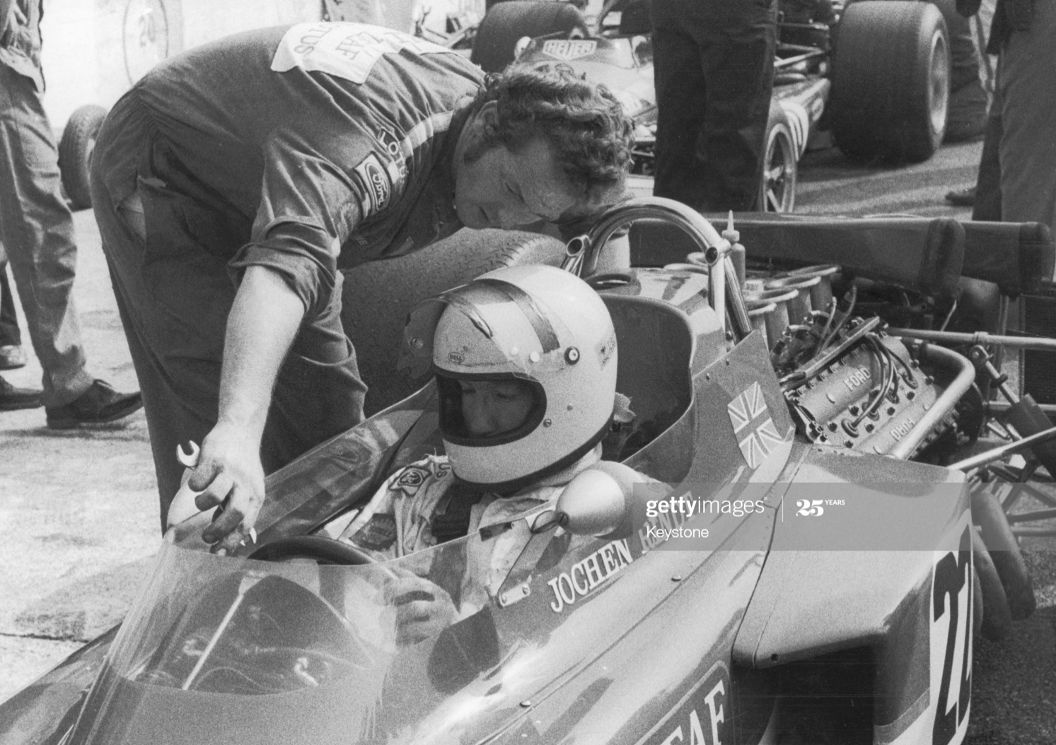 British GP weekend, Brands Hatch, July 1970. The dashboard support became a mandated structural element to protect the driver from the commencement of the 1976 season- it was no such thing in any of the cars in 1970
