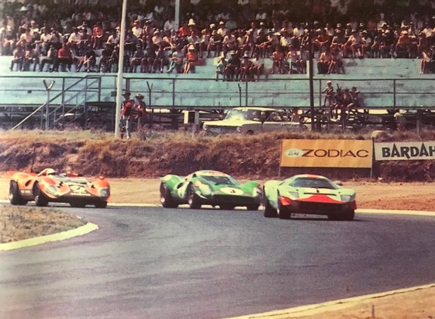 A week later Hawkins won the Cape Town 3 Hour at Killarney and was again victorious on 1 December at the GP Bulawayo, on the Kumalo circuit, he was second in the GP of Rhodesia on the same weekend. He again placed second in the 3 Hour de Lourenco Marques, in Mozambique that race won by Mike Hailwood and Malcolm Guthrie’s Mirage M1 Ford. He finished his tour with victories in the Roy Hesketh 3 Hours in Pietermaritzburg and 500 Km of East London on January 4 1969.