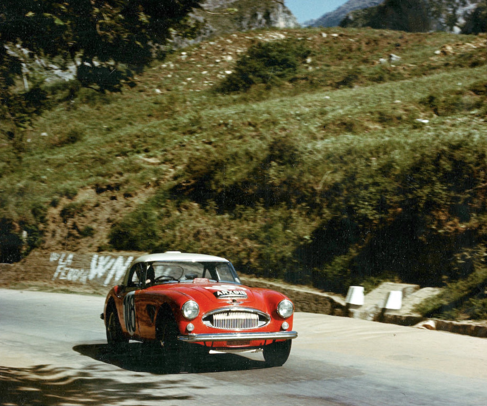 Hawkins/Makinen works Austin Healey 3000 during Targa in 1965. 21st and second in class. Vaccarella/Bandini won in a Ferrari 275 P2 (Bonhams Collection)