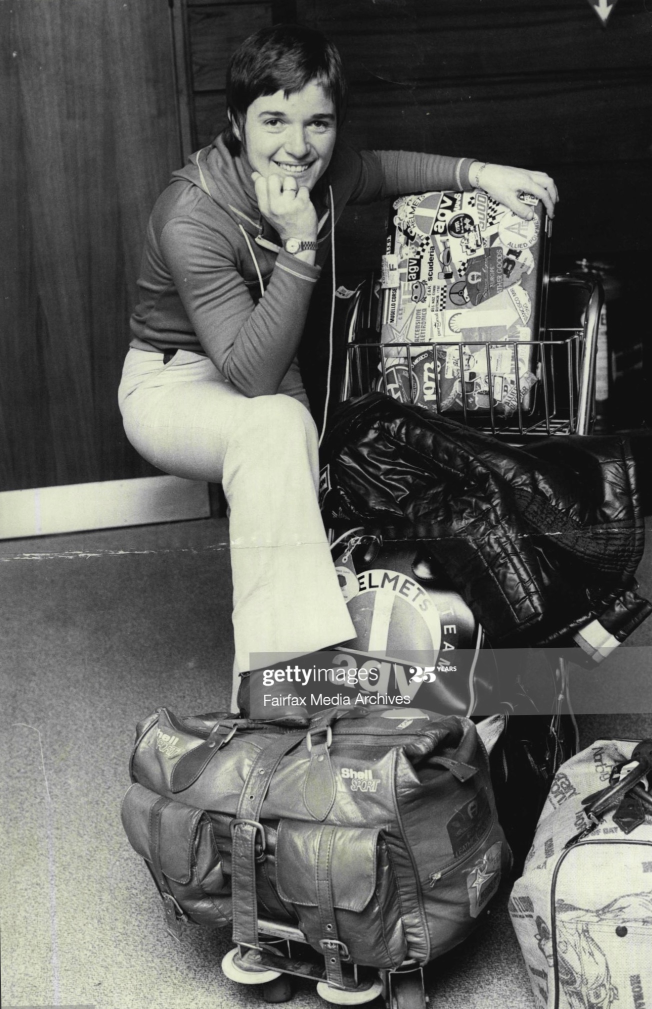 Lella at Sydney Airport before heading off to Melbourne for her first race in Australia, 30 October 1974.