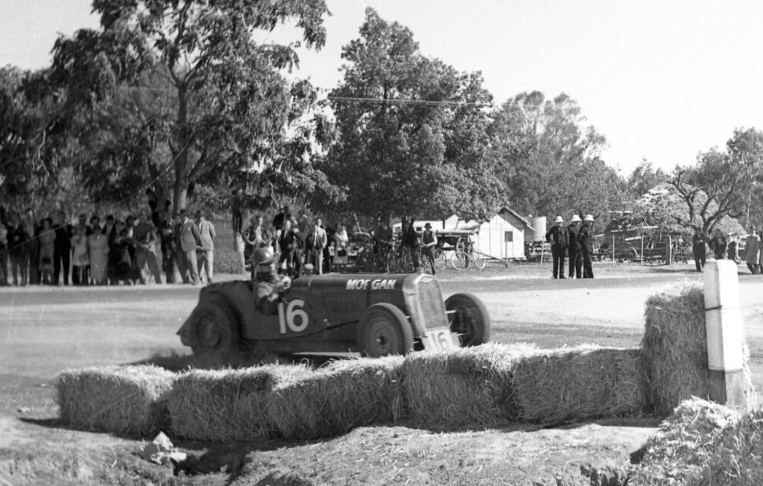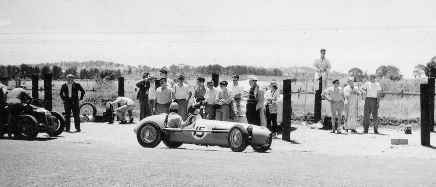 The Queensland Motor Sporting Club used its runways for a sprint meeting in 1938 but the place ‘blossomed’ post-war into a race circuit after local ‘Lawnton Garage’ proprietor and racer Snow Sefton saw its potential.