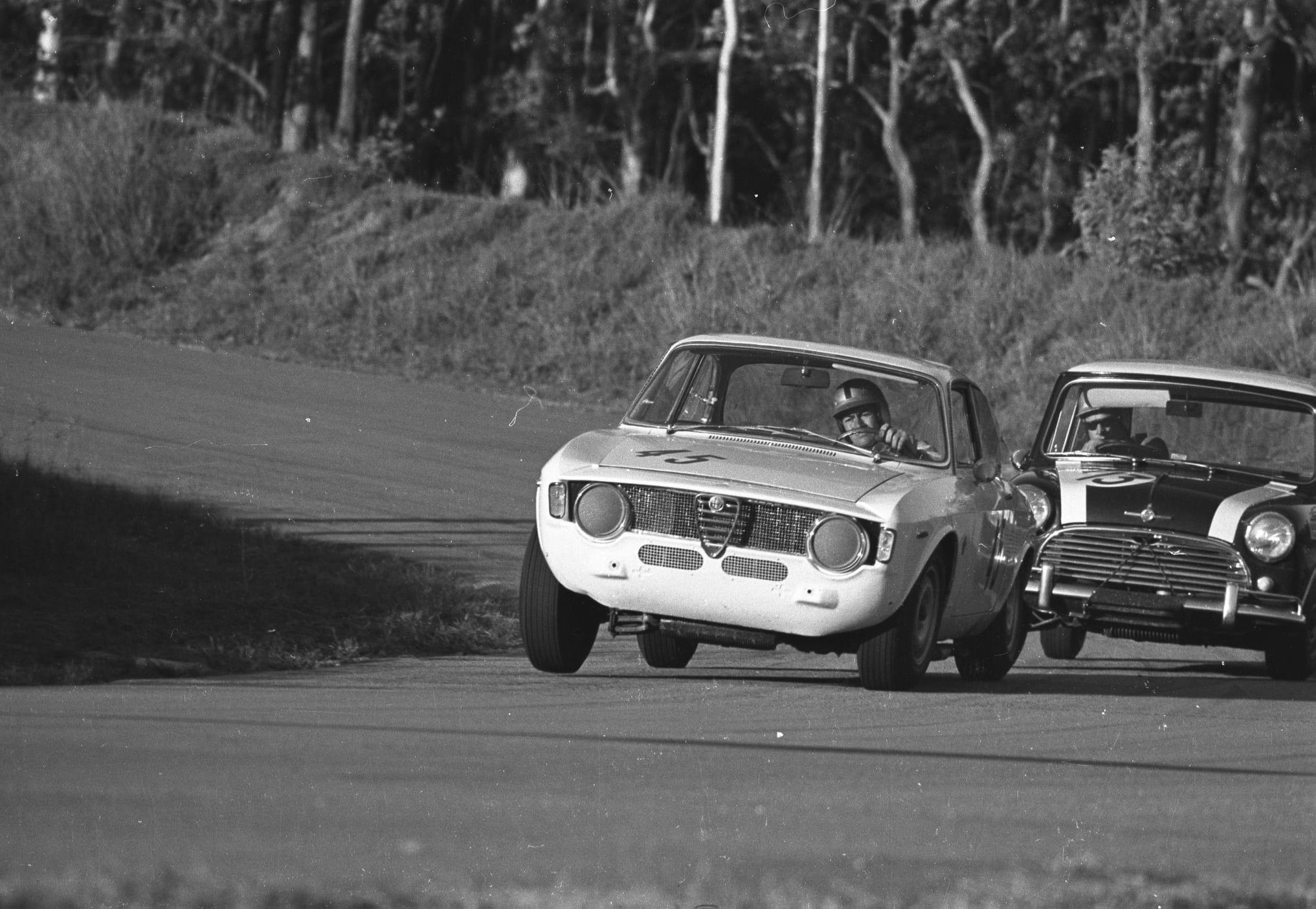 The Alfa Romeo GTA is ‘LHD’ the first of the two Mildren GTAs, the second was ‘RHD’ which appeared not too long after this, Bob’s car is an immortal Morris Cooper S, one of THE competition cars of the sixties and top five for bang for buck and most versatile? Bartlett and the Mildren GTAs here; https://primotipo.com/2014/11/27/the-master-of-opposite-lock-kevin-bartlett-alfa-romeo-gta/