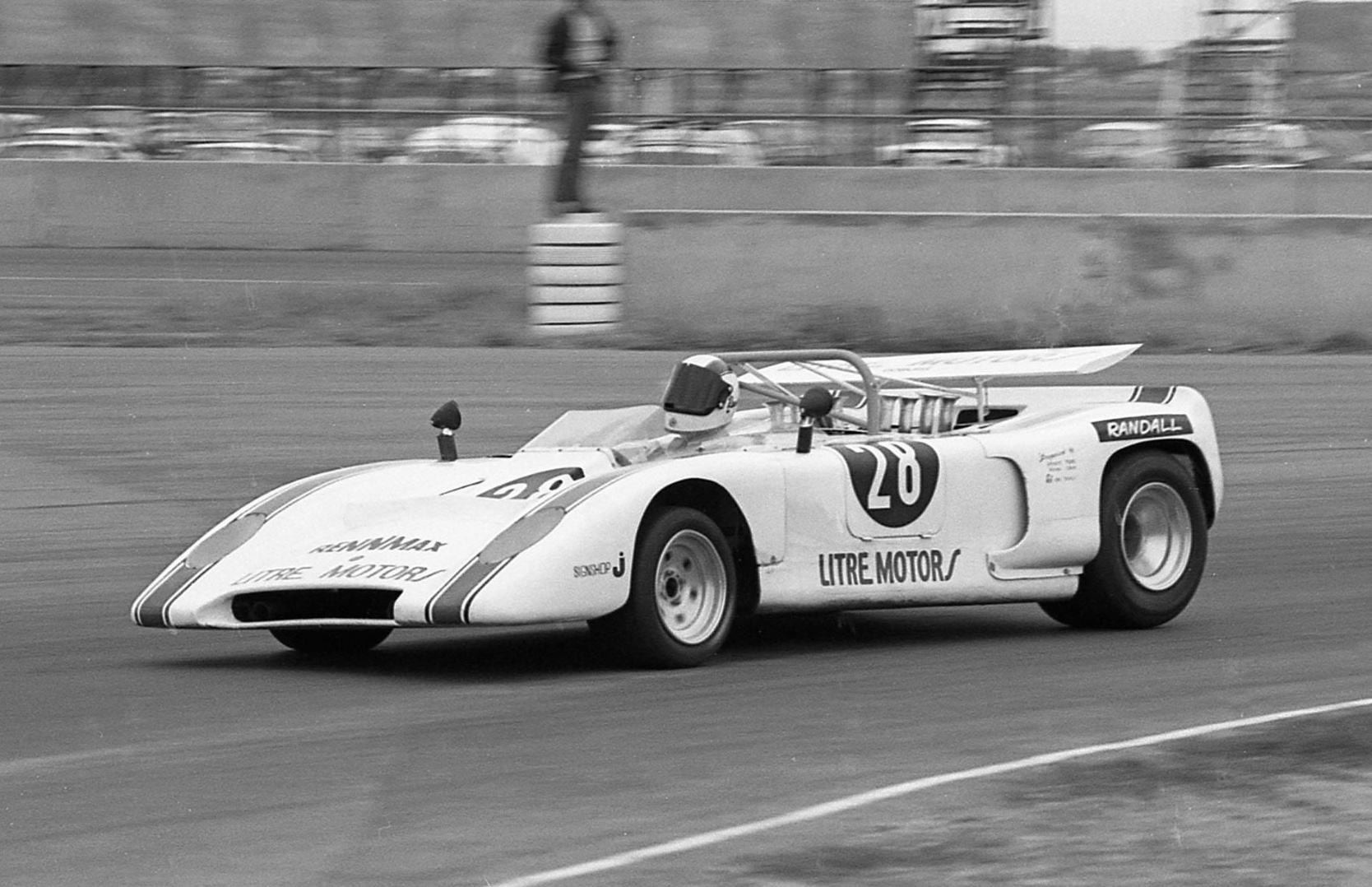 And below hs is togging up before the off with plenty of his own tweaks to the setup of his Bell Star to give some semblance of vision in the race won by Steve Thompson’s Chevron B24 Chev- GM was a distant third behind Thompson and Frank Matich.