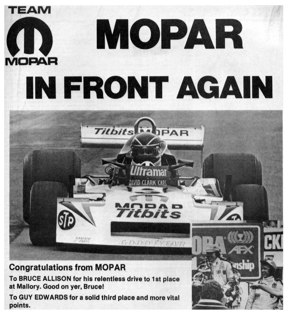 At Mallory on 30 July Bruce put his new March to good use with Trimmer’s McLaren up his chuff for much of the 75 lap race, he finished ahead of Tony and teammate Guy Edwards in the other RAM 781.