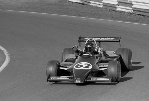 They were seventh and second in the race won by Alan Jones’ Williams FW07B Ford. GC had a shocker of a debut weekend in the worlds only bespoke ground-effects F5000 car, battling structural shortcomings induced by the grip caused.