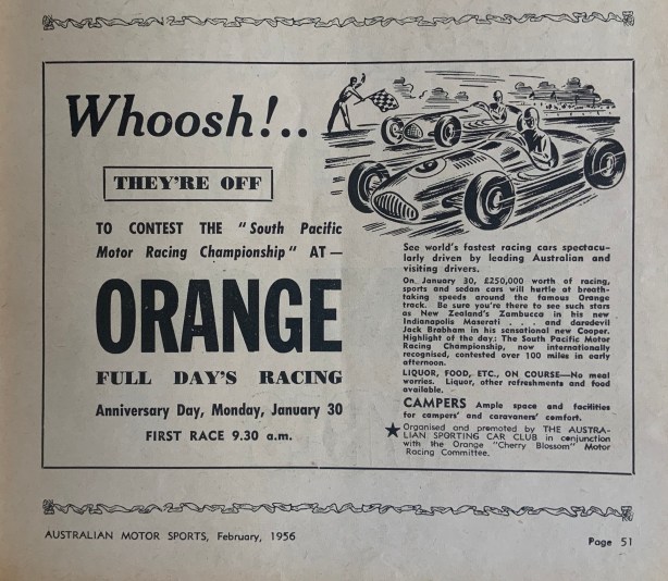 After a relaxing Port Phillip Bay Christmas/New Year the newlyweds set off from Melbourne for the South Pacific Trophy at Gnoo Blas, Orange, New South Wales over the January 31, 1955 weekend.