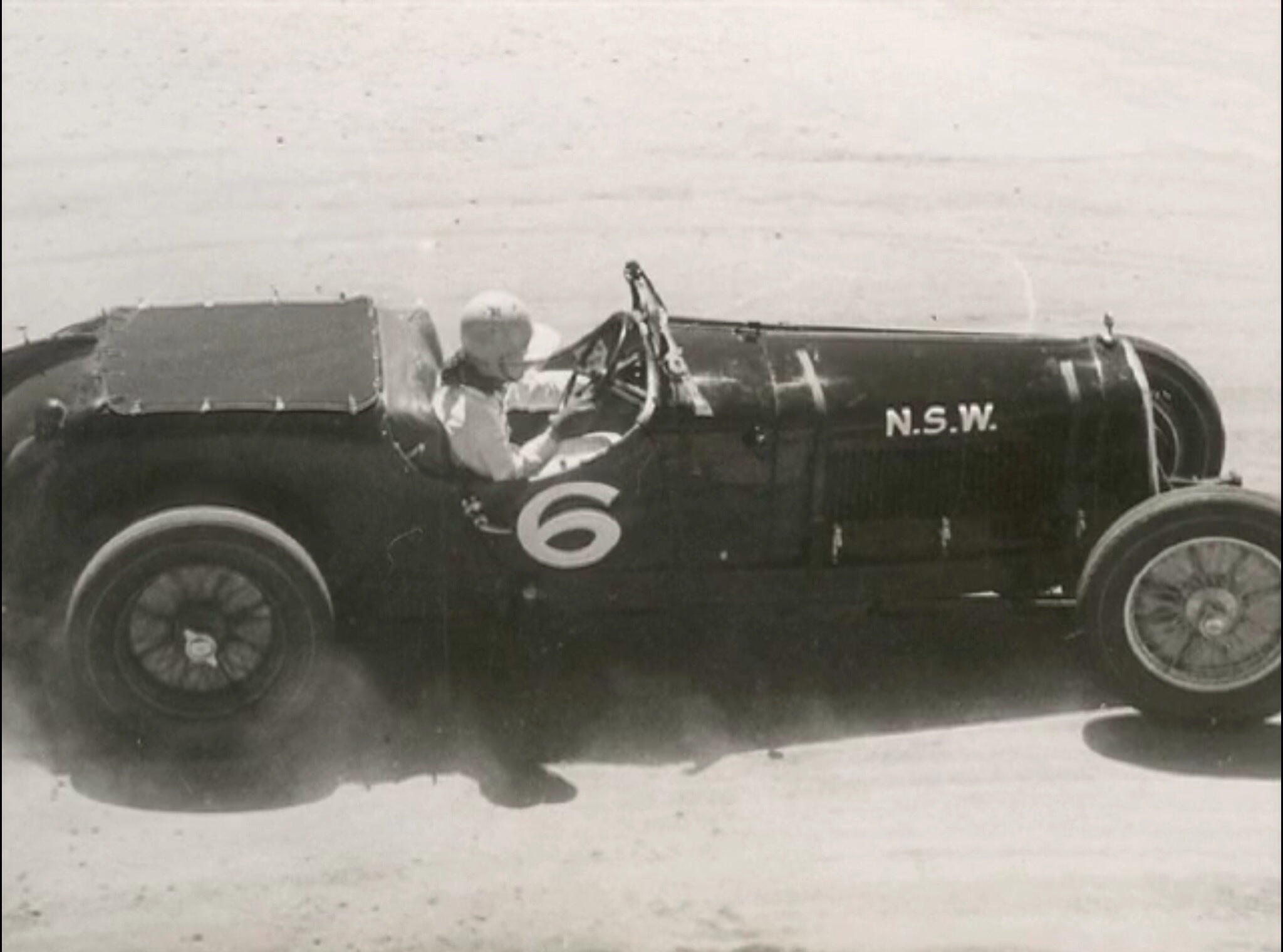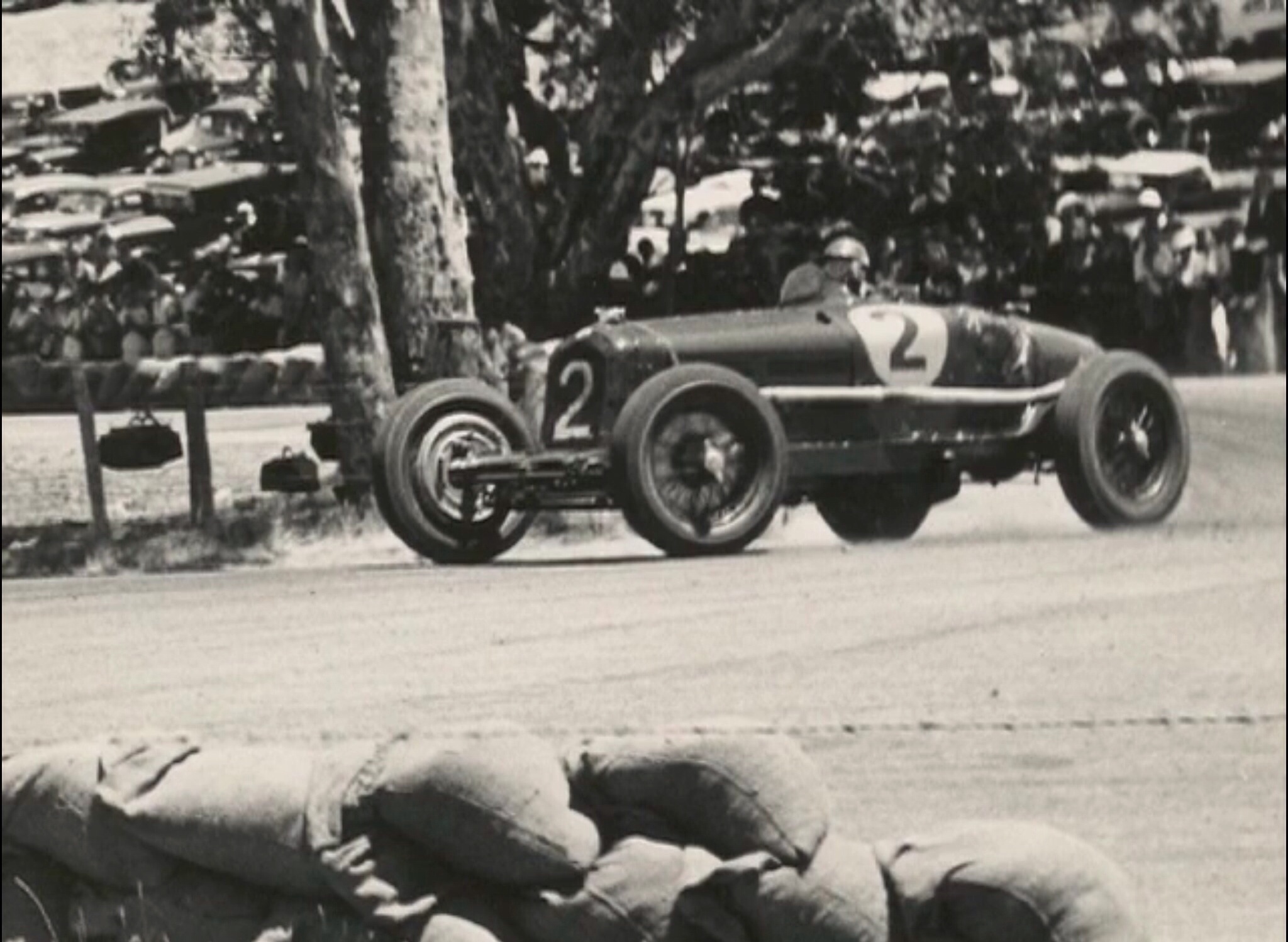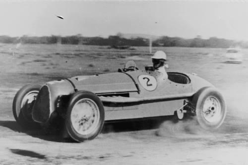 ‘Losing six minutes…Barrett determinedly set after the field and recorded the best average lap time for the day – 93.7 miles an hour. That time was about 10 miles an hour faster than the best lap recorded last year (in the 1938 January South Australian GP). He gave a brilliant exhibition of driving and control, and cornered magnificently at every bend, rarely getting into trouble with the sandbags. Barrett consistently average more than 90 miles per hour and on two occasions equalled his lap record. His speed on the straights approached 140 miles an hour’.