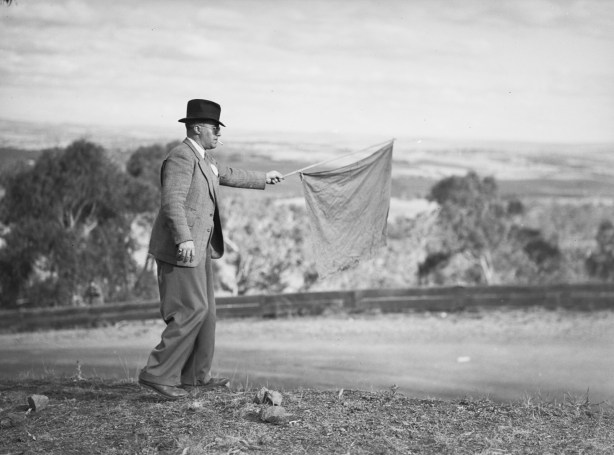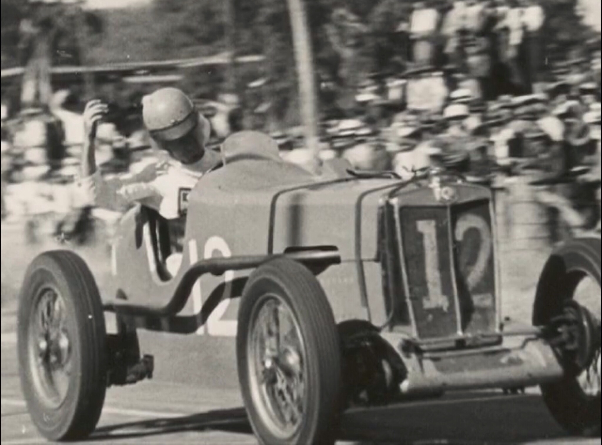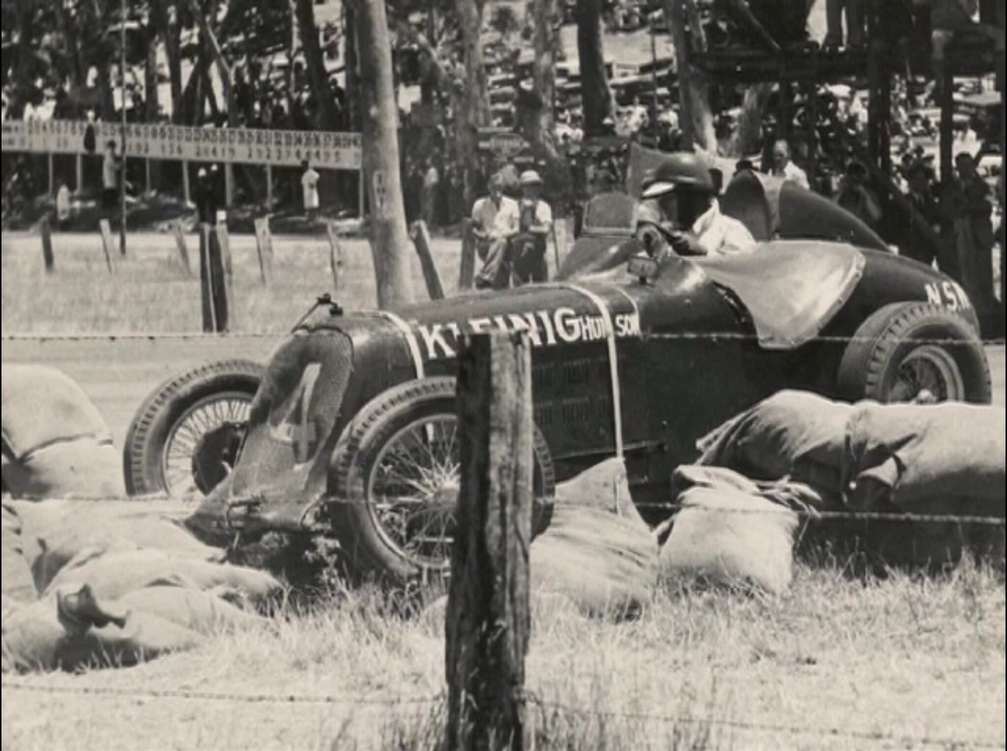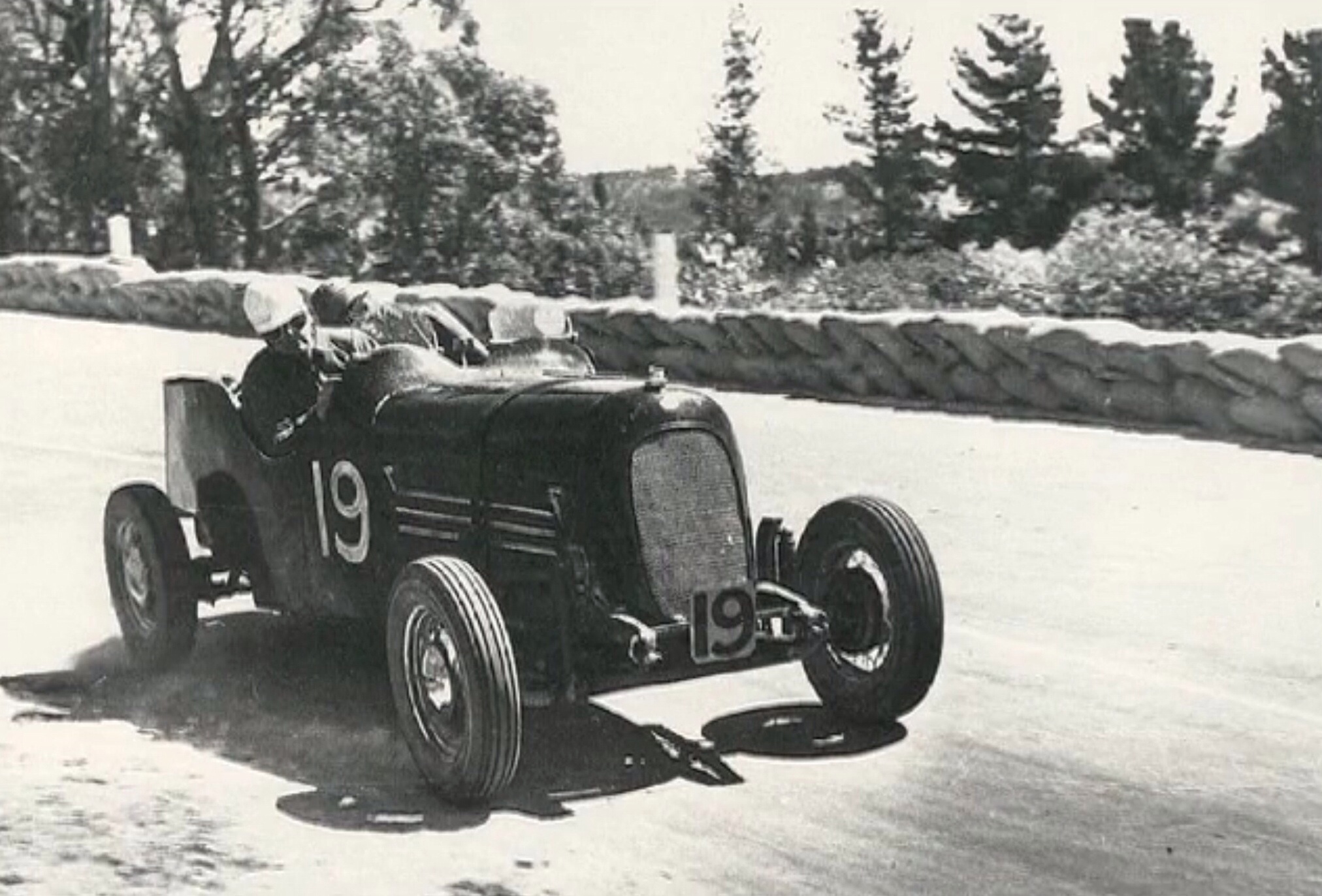 Flaggie 1946 style, during the New South Wales Grand Prix at Mount Panorama