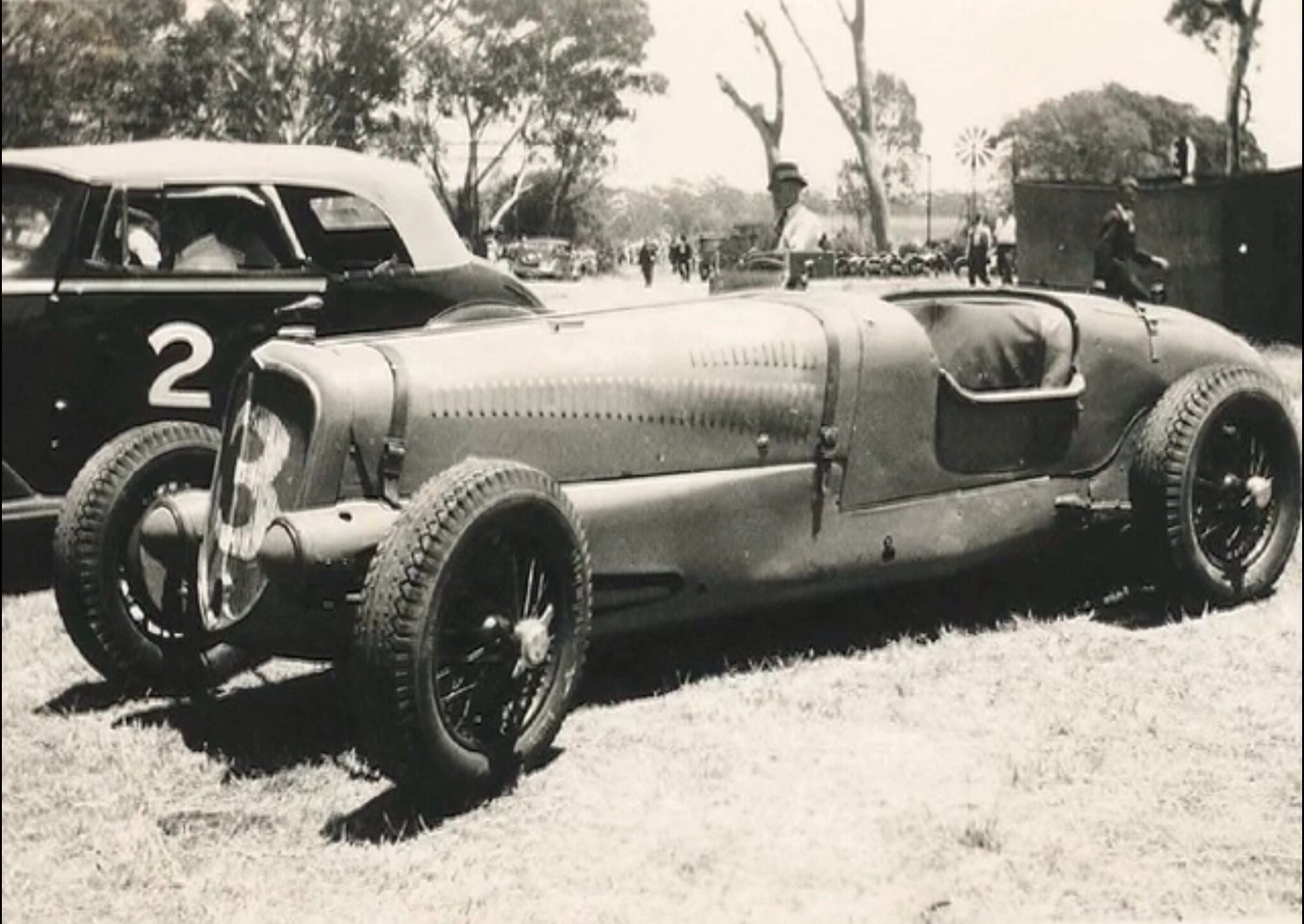 Mount Dromedary and Black Hills are in the background. Mick Watt achieved over 100 wins with this pretty little car before it fell into disuse in the mid-sixties and ultimate restoration by Ian Tate in Melbourne.