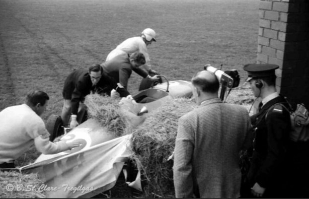 ‘While we won the class there were some dramas. At about two-thirds distance Glyn was approaching the fast right-hander under Dunlop Bridge and on turn-in the steering came up (on the adjustment only), but Glyn thought the wheel had come off!! The E ran wide off the circuit and through a table-drain, damaging the outside rear wheel.’