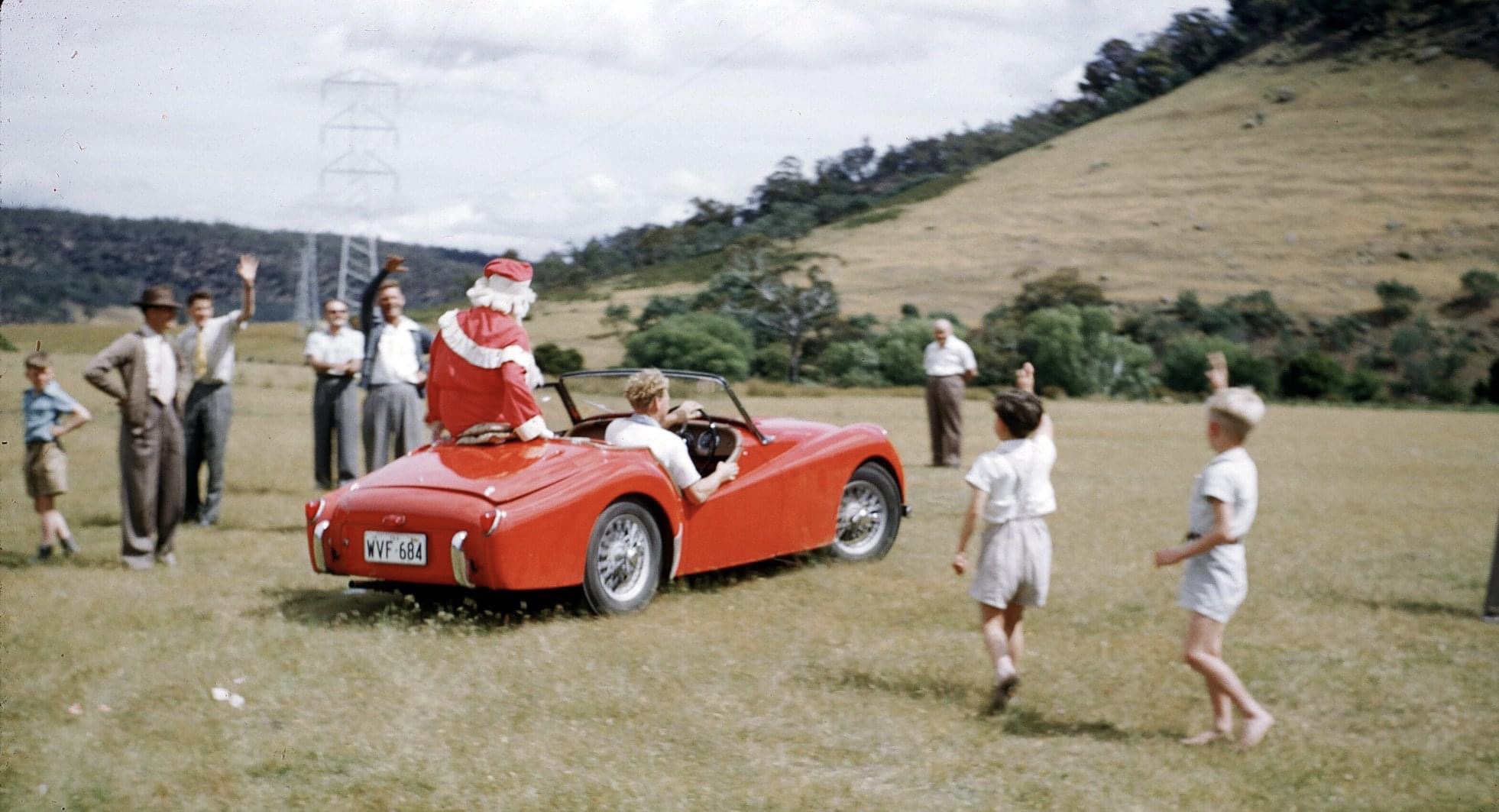 Santa’s Elf is a Mr Cussin, a confused MG Car Club member driving a Triumph TR2.
