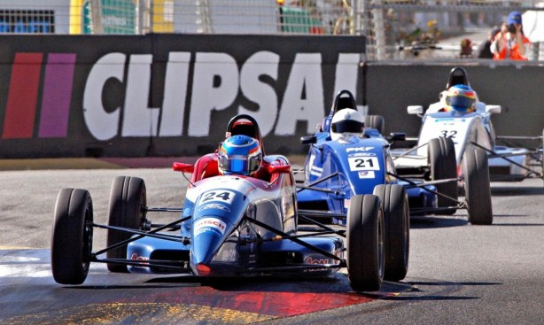 Giving chase is Ben Clucas’ Van Diemen RF06 and Nathan Carratti, Van Diemen RF04.