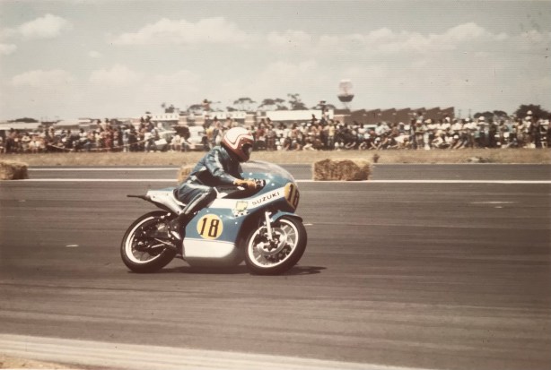Peter’s waning interest was piqued with the purchase of a fabulous Suzuki RG500 square-four in time for the infamous Laverton RAAF base February 1976 Australian Tourist Trophy meeting. This was headlined by Giacomo Agostini’s works MV Agusta 500-four.