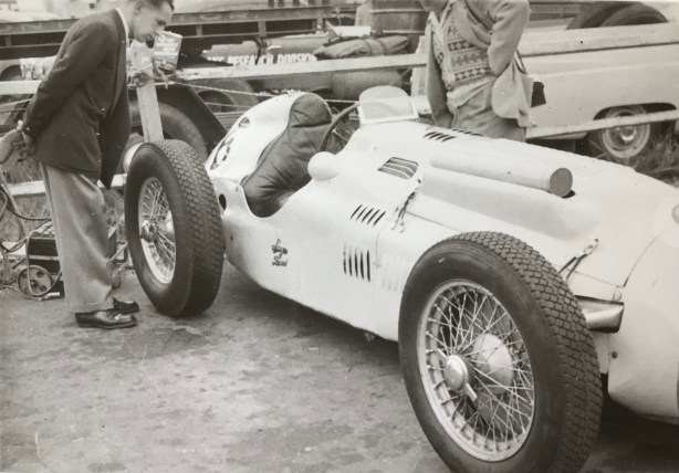 The plucky racer was one of the very fastest of his day, a Cooper man throughput after his formative MG stage. See here; https://primotipo.com/2017/02/02/patto-and-his-coopers/ Stephen reckons the side view of the car alongside the T39 above is Brian Sampson’s Morris Special- ‘Sambo’, was very close to the start of a long, diverse and successful career which was only finished by a road accident not so long ago.